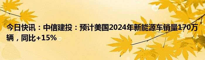 今日快讯:中信建投:预计美国2024年新能源车销量170万辆,同比+15%