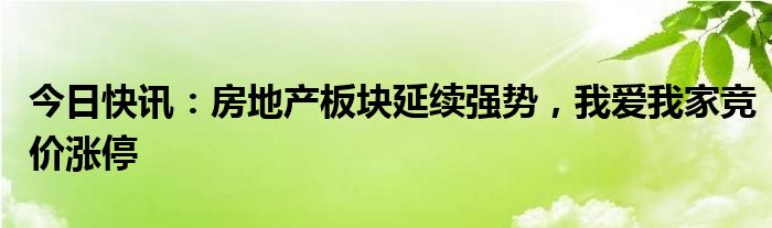 今日快讯:房地产板块延续强势,我爱我家竞价涨停