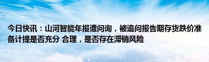 今日快讯:山河智能年报遭问询,被追问报告期存货跌价准备计提是否充分 合理,是否存在滞销风险