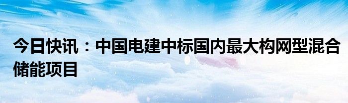 今日快讯:中国电建中标国内最大构网型混合储能项目