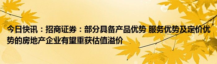 今日快讯:招商证券:部分具备产品优势 服务优势及定价优势的房地产企业有望重获估值溢价