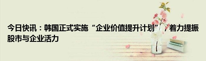 今日快讯:韩国正式实施“企业价值提升计划”,着力提振股市与企业活力