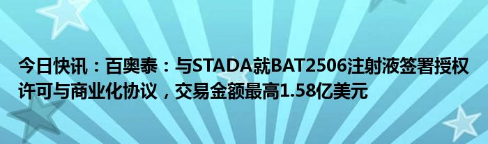 今日快讯:百奥泰:与STADA就BAT2506注射液签署授权许可与商业化协议,交易金额最高1.58亿美元