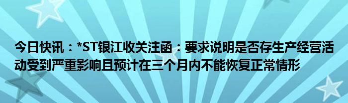 今日快讯:*ST银江收关注函:要求说明是否存生产经营活动受到严重影响且预计在三个月内不能恢复正常情形