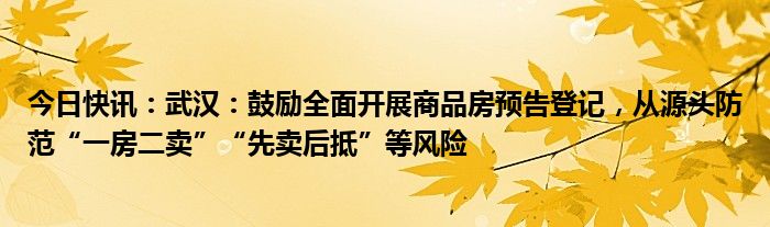今日快讯:武汉:鼓励全面开展商品房预告登记,从源头防范“一房二卖”“先卖后抵”等风险