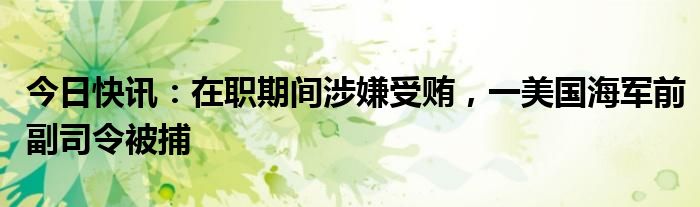 今日快讯:在职期间涉嫌受贿,一美国海军前副司令被捕