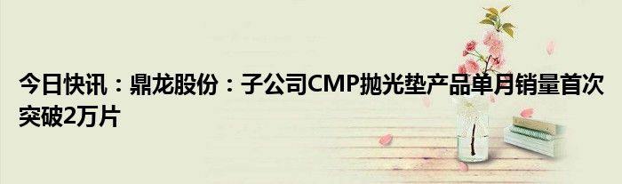 今日快讯:鼎龙股份:子公司CMP抛光垫产品单月销量首次突破2万片