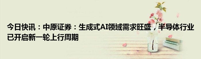 今日快讯:中原证券:生成式AI领域需求旺盛,半导体行业已开启新一轮上行周期