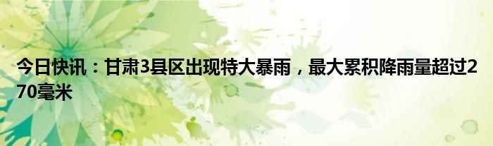 今日快讯:甘肃3县区出现特大暴雨,最大累积降雨量超过270毫米