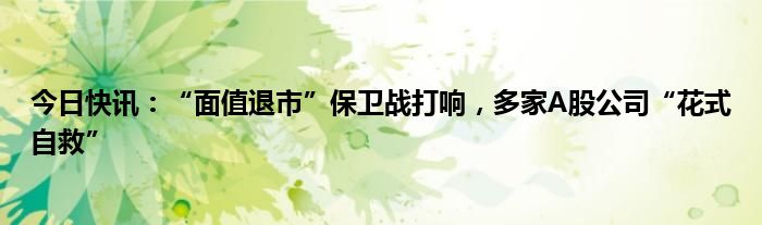 今日快讯:“面值退市”保卫战打响,多家A股公司“花式自救”