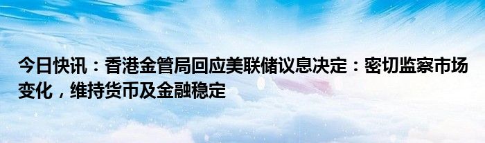 今日快讯:香港金管局回应美联储议息决定:密切监察市场变化,维持货币及金融稳定