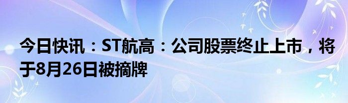 今日快讯:ST航高:公司股票终止上市,将于8月26日被摘牌
