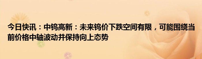 今日快讯:中钨高新:未来钨价下跌空间有限,可能围绕当前价格中轴波动并保持向上态势