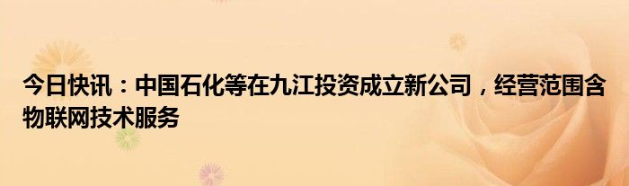 今日快讯:中国石化等在九江投资成立新公司,经营范围含物联网技术服务