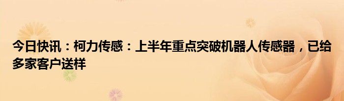 今日快讯:柯力传感:上半年重点突破机器人传感器,已给多家客户送样
