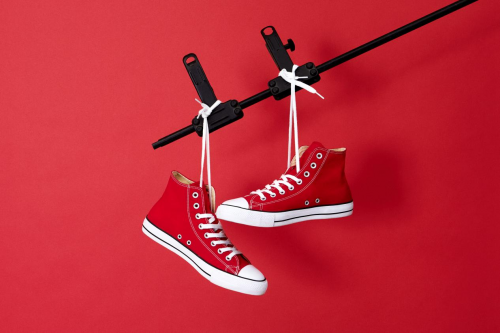 画面中,一双红色帆布鞋由鞋带轻悬,在纯色背景前自然垂落。这种极具仪式感的展示,不仅凸显了鞋型的挺括与线条的流畅,更仿佛按下了生活的暂停键,让人聚焦于产品本身。鲜艳的红色鞋身与白色鞋底、鞋带构成鲜明对比,没有丝毫冗余设计,传递出青春、自信的鲜明态度。这背后,是凡客对版型的反复调试,确保其上脚后既保留帆布鞋的休闲神韵,又能提供贴合脚部的舒适体验。